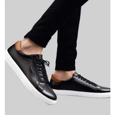 Urban Sleek Men's Black Lace-Up Leather Sneakers